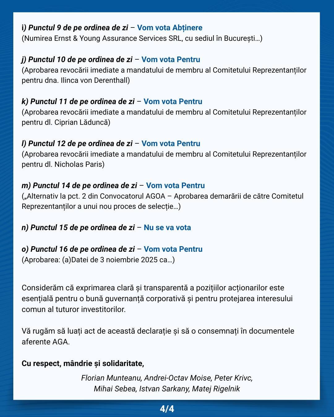 Poate ar fi util sa ne spuneti daca sustineti o politica de lichidare/returnare sau de dezvoltare a investitiilor. Ar fi un indiciu bun pentru oricine e interesat sa voteze.